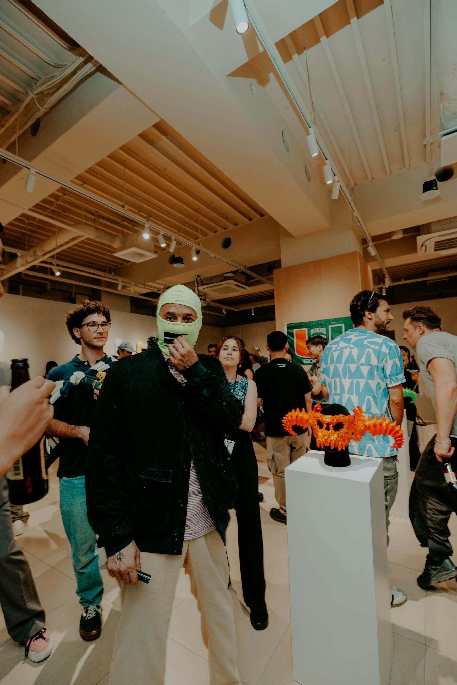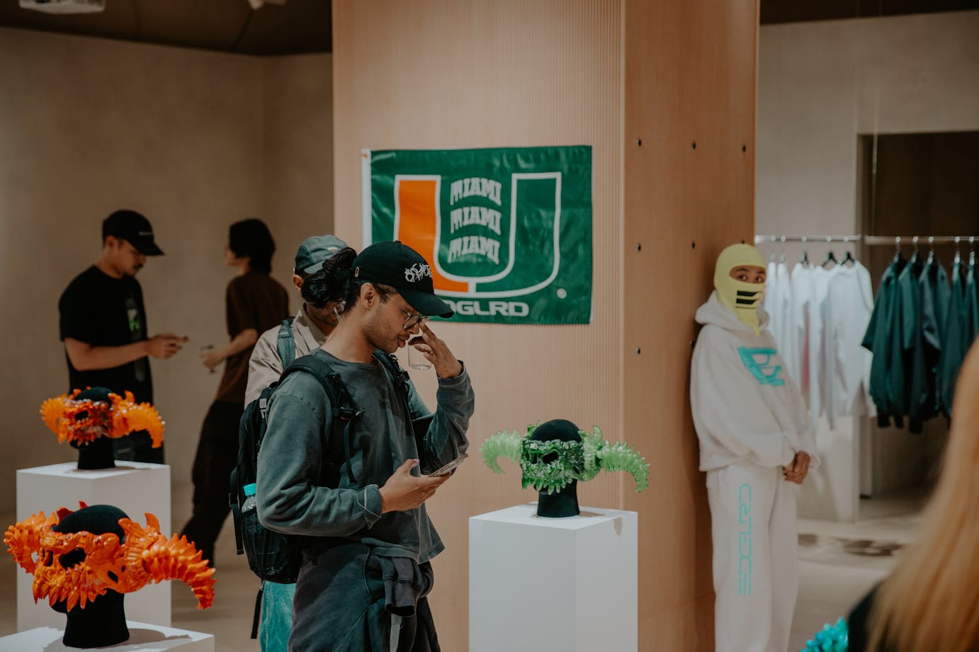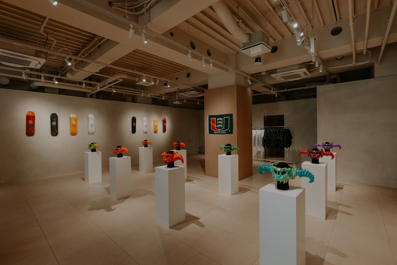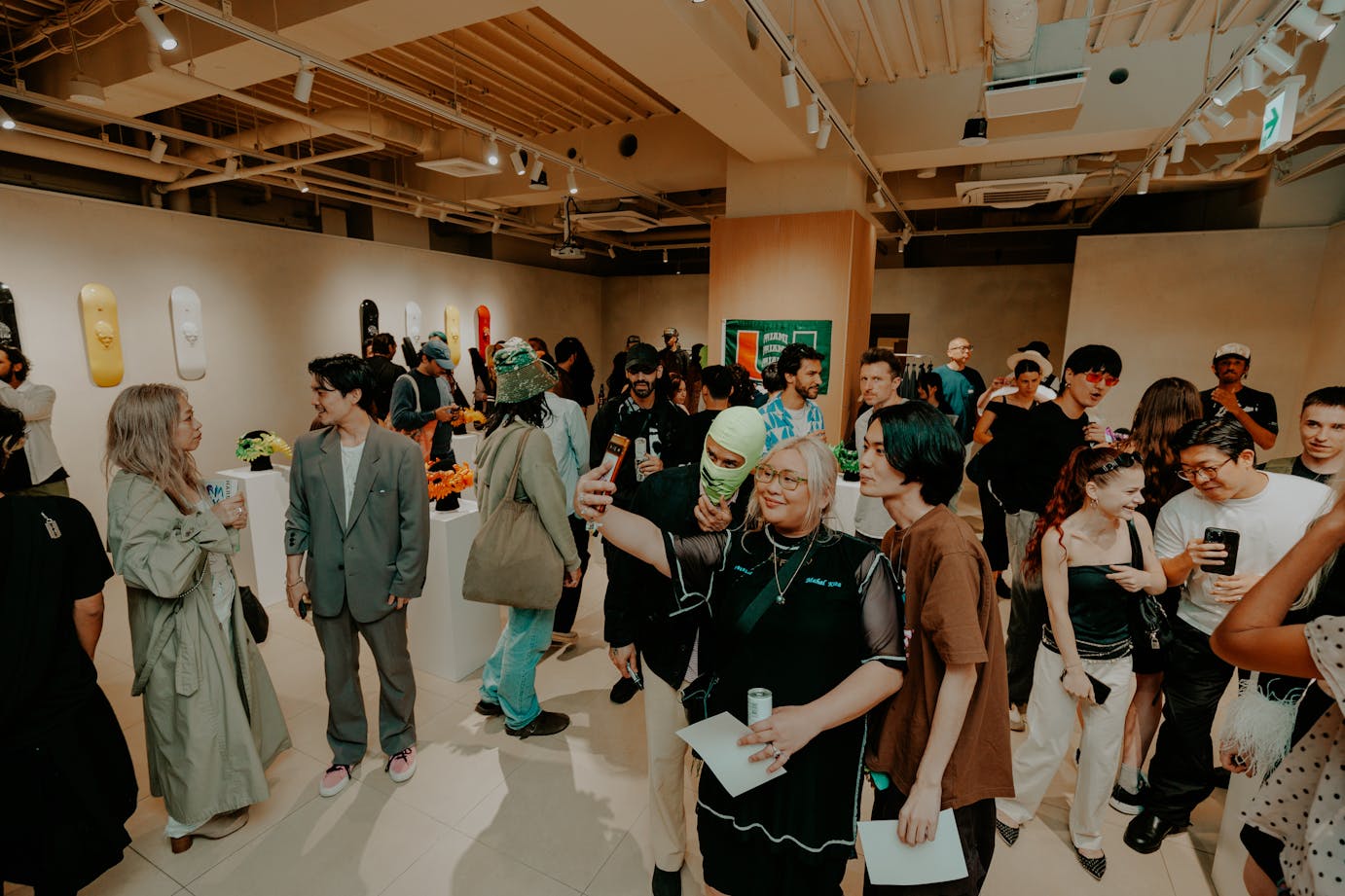 The opening reception, in partnership with Sabukaru and GATA, showcased EDGLRD merchandise, apparel, masks, and limited-edition skate decks. Over 200 Tokyo creatives and tastemakers attended, forming their first impressions of the brand. The exhibition also featured costumes from EDGLRD's upcoming film "Baby Invasion," emphasizing the brand's identity beyond Harmony Korine.