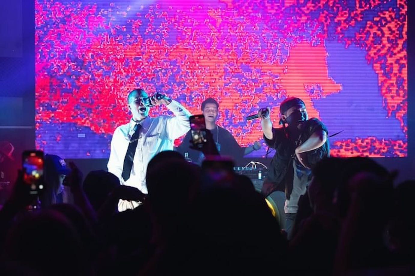 The ceremonious night featured DJ sets by AJUCHAN, VLOT, and MIYACHI’s trusty back DJ Mark West, in addition to a guest set by rapper Leon Fanourakis. The packed venue enjoyed a show truly for the fans, with surprise dancers and friends joining MIYACHI on stage. The programming included a screening of a then-unreleased episode of Konbini Confessions, with MIYACHI’s KC persona appearing in the crowd for live interviews and audience engagement.